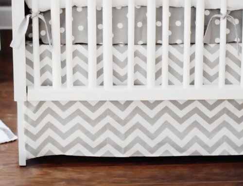 Inspired by the newly popular chevron pattern, our Zig Zag Baby Crib Bedding will give your nursery a modern, clean look. Crisp white and gray lends a fresh feel to your new baby’s room. Our grey baby bedding can work for a boy or a girl. Zig Zag Baby two piece set includes a crib sheet and skirt. The sheet is made from White on Gray Polka Dot. The 17" tailored skirt is made from Zig Zag in Slate.